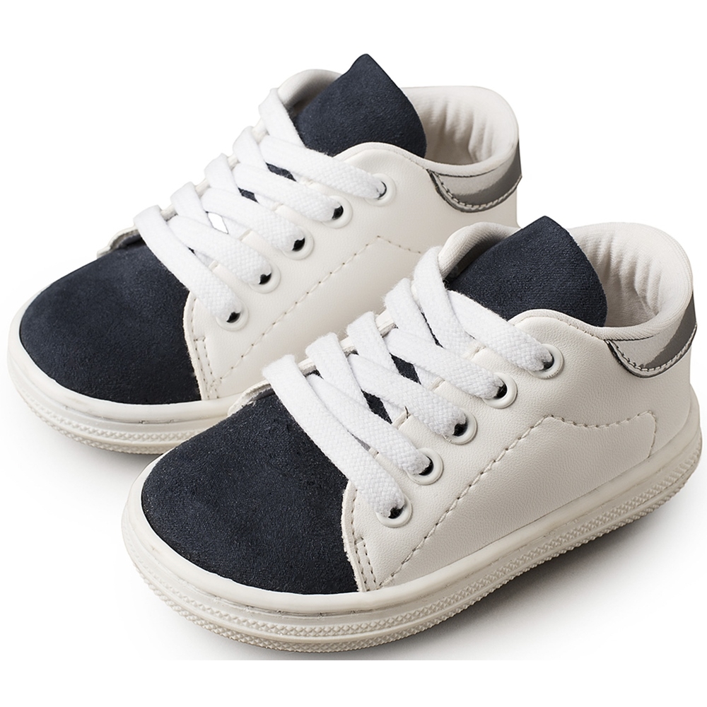 Δετά δίχρωμα sneakers από συνθετικό δέρμα και ύφασμα, σε χρώμα λευκό-μπλε.