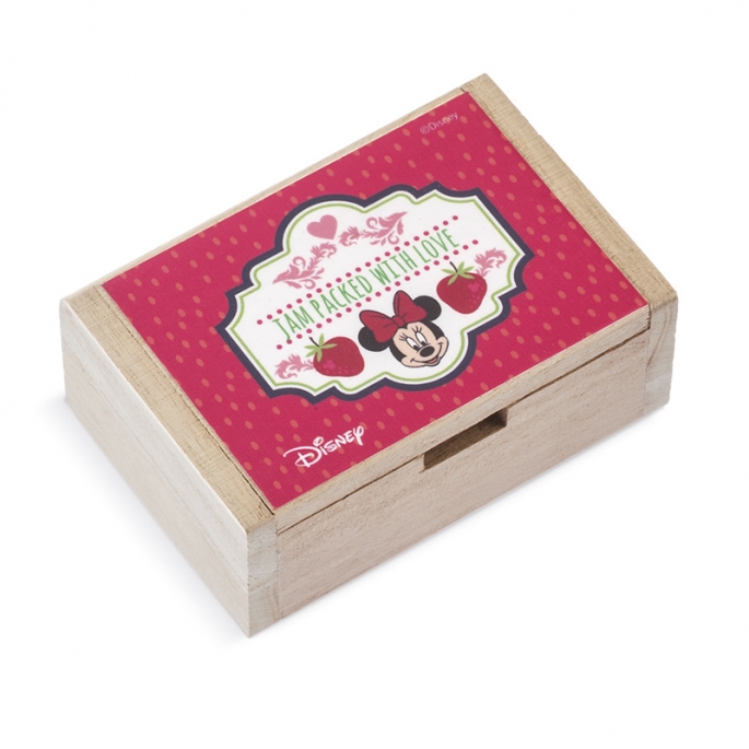 ξύλοDisney ξύλινο natural παραλληλόγραμο κουτί . Είναι διακοσμημένο με αυτοκόλλητο print Minnie mouse " Strawberry jam" σε κόκκινες αποχρώσεις .