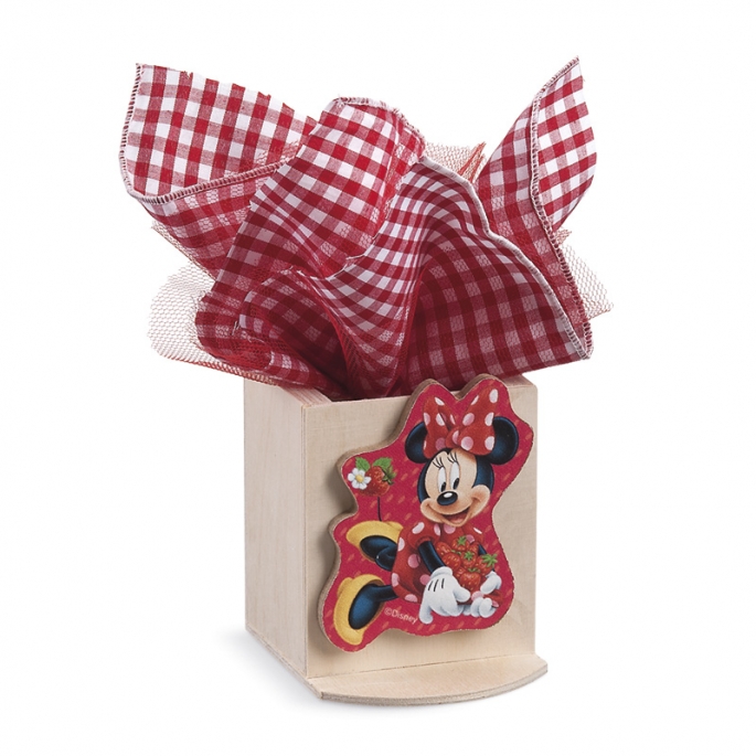 ξύλοDisney ξύλινη natural μολυβοθήκη. Είναι διακοσμημένη με ξύλινη παράσταση print Minnie mouse "Strawberry jam "σε κόκκινες αποχρώσεις
