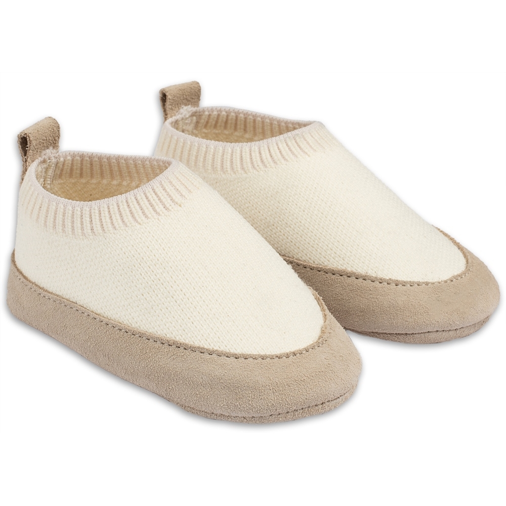 Πλεκτά sneakers με δερμάτινο πάτο σε μπεζ χρώμα.