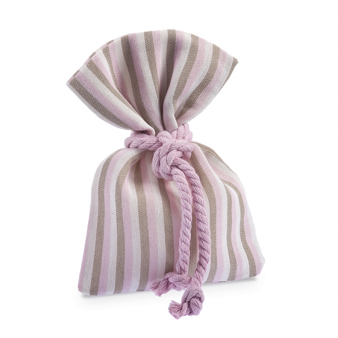 Πουγκί λινό ριγέ ροζ-εκρού-καφέ