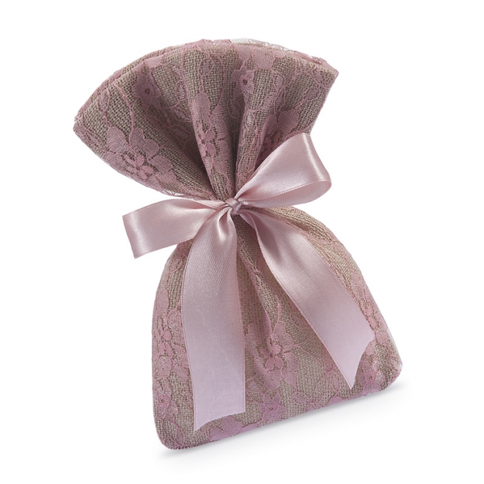 Μπομπονιέρα Βάπτισης Πουγκί με δαντέλα