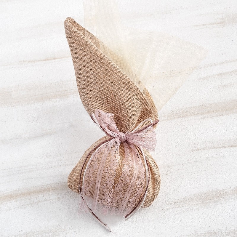 Μπομπονιέρα πουγκί από λινάτσα με μύτη, σε natural αποχρώσεις.