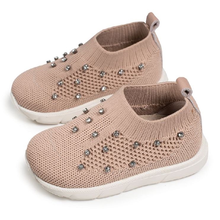 Βαπτιστικά παπούτσια για κορίτσια πλεκτά sneakers διακοσμημένο με strass swarovski ανατομικά από πλεκτό.