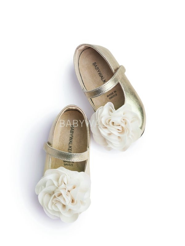 Βαπτιστικά παπούτσια για κορίτσια δερμάτινο γοβάκι με chiffon λουλούδι ανατομικά από δέρμα μεταλιζέ