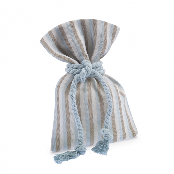 Πουγκί λινό ριγέ σιέλ-εκρού-καφέ