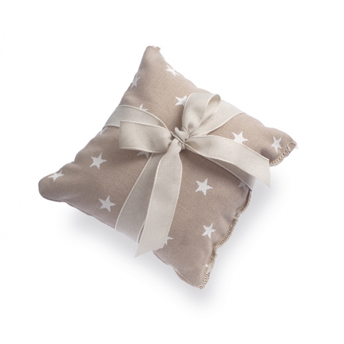 Μαξιλάρι λινό καφέ με αστέρια λευκά .Στην τιμή δεν περιλαμβάνεται ο στολισμός / δέσιμο.
