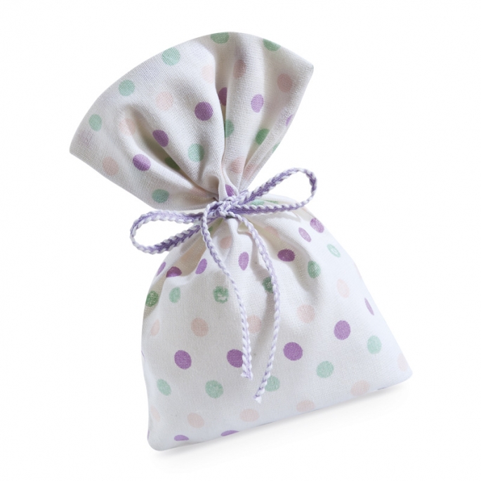 Πουγκί λινό λευκό με πουά ροζ-λιλά-βεραμάν