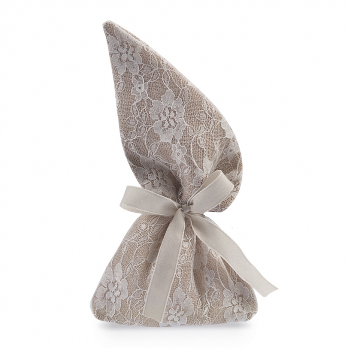Μπομπονιέρα Βάπτισης Πουγκί με δαντέλα με μύτη