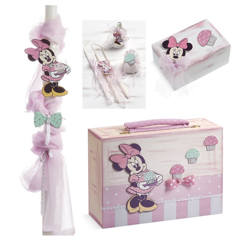 Σετ βαπτιστικών με Ξύλινο κουτί Minnie, της Disney.